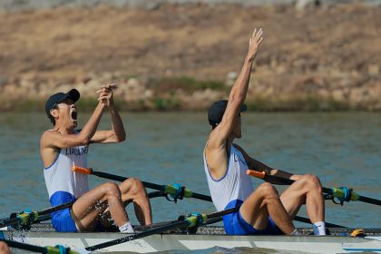 十五运会赛艇女子轻量级双人双桨决赛 浙江队邹佳琪/富灵夺冠