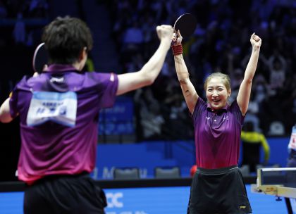 十五运会乒乓球混合双打决赛 广东队林高远/刘诗雯夺冠