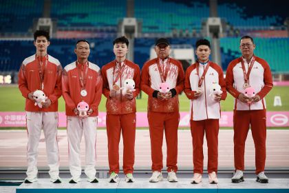 十五运会田径男子链球决赛 江苏队包揽前四名