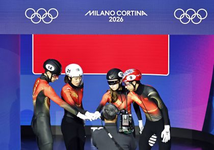 米兰冬奥会短道速滑混合团体接力1/4决赛 中国队晋级半决赛
