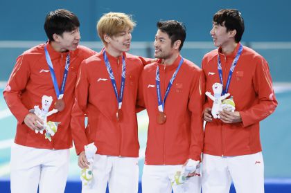 米兰冬奥会速度滑冰男子团体追逐B组决赛 中国队获得铜牌