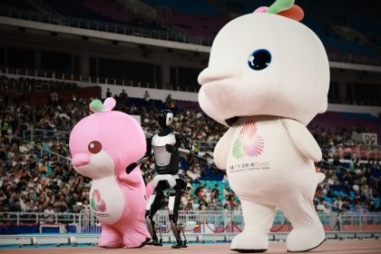 十五运会田径场百米赛道 “喜洋洋”“乐融融”大战机器人