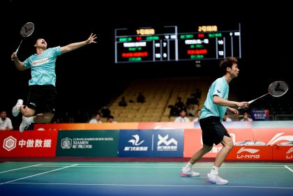 十五运会羽毛球男双决赛 安徽队刘阳/刘毅夺金