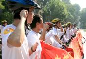 南京大学生骑自行车赴京沿途宣传奥运