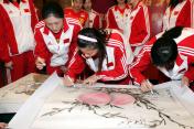 画家严斌向中国女排赠画