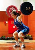 中国女子举重选手陈晓敏准备参加63公斤级比赛