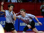 世乒赛男双1/16决赛 德国选手波尔/费杰科内斯