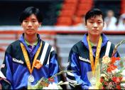 刘国梁、孔令辉获得乒乓球男子双打金牌