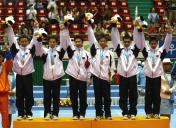 中国女子体操队夺得奥运会团体铜牌,教练陆善真与队员