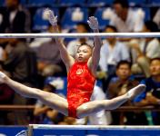 中国女子体操队夺得奥运会团体铜牌,黄曼丹在高低杠比赛中