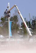雅典奥运即将开幕 烟尘中工人紧张工作