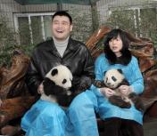 姚明夫妇现身熊猫野放