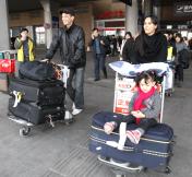 中国短道速滑队载誉抵京