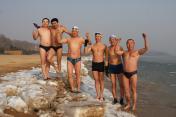 秦皇岛冬泳爱好者冬泳迎新春
