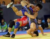 亚运会男子60公斤级自由跤决赛 蒙古选手曼达赫纳兰夺得冠军