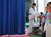跆拳道队亚运选拔赛 奥运冠军场边当看客