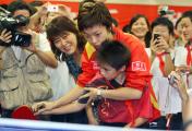 奥运会乒乓球冠军张怡宁王励勤在沪辅导小运动员