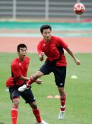 谢亚龙率领国奥冒雨训练
