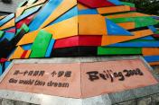 08奥运倒计时一个月 游人天安门广场倒计时牌前合影