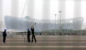 “鸟巢”进行外围绿化工作