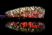 北京:“鸟巢”亮灯 夜色中尽展迷人风采