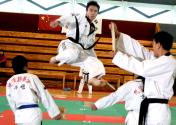 秦皇岛跆拳道运动员展绝技 号召市民共迎奥运