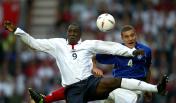 2002世界杯赛场上 贝克汉姆与巴西的吉尔伯托争抢(资料片)
